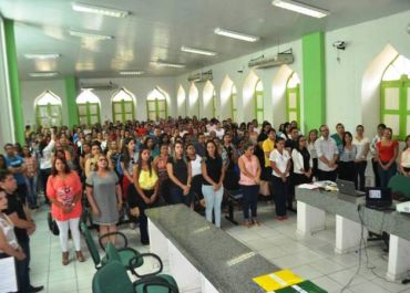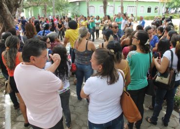 Em grande número, reunidos na praça da prefeitura, os servidores foram mobilizados pelos Sindicatos