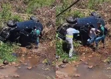 Carro capota e cai em bueiro após professora perder o controle da direção em avenida no Piauí