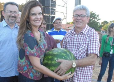Deputada também foi presenteada com a maior melancia da festa, que pesou quase 24 kg