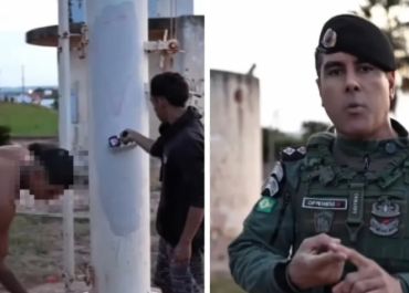 Capitão da PM-CE faz integrantes de facção apagar pichações em município na divisa com o Piauí