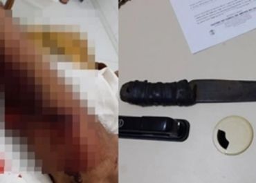 A polícia foi acionada e chegando ao local encontrou a vítima, identificada de 55 anos de idade, com um corte no braço.