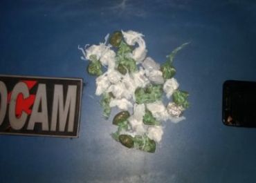 Ao chegar no local informado, os policiais realizaram a abordagem aos dois indivíduos e encontraram em posse deles 30 invólucros de substância análoga a maconha