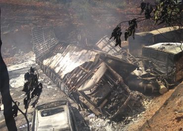 Motorista morre carbonizado em acidente entre carretas na BR-135