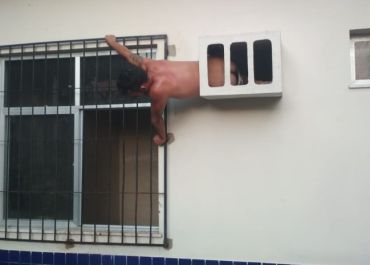 Homem tenta fugir de delegacia por buraco de ar-condicionado, mas fica entalado