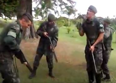 Cinco homens seguem coreografia enquanto sexto militar filma a ação. Exército disse que soldados foram identificados e expulsos da entidade.