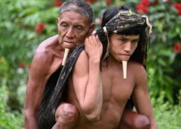 O jovem índio Tamy Zoé foi registrado pelo médico Erik Jennings carregando o pai, Wahu Zoé