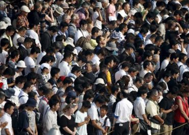 Milhares de pessoas ficaram em completo silêncio no Parque Memorial da Paz às 8h15 locais, a hora exata na qual um avião americano disparou a primeira bomba nuclear da história a poucos metros de onde o ato era reali