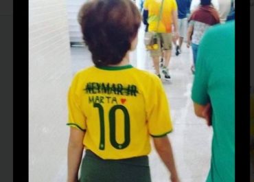 Garoto foi flagrado circulando com uma camisa da seleção brasileira com o nome de Neymar riscado e colocado logo abaixo o nome da atacante Marta, da seleção feminina