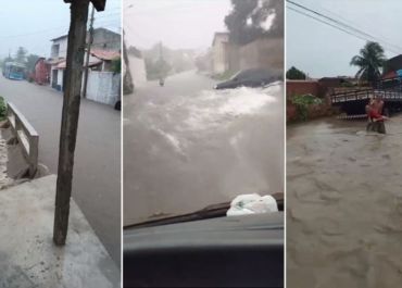 Ruas e casas ficam alagadas após forte chuva no Piauí