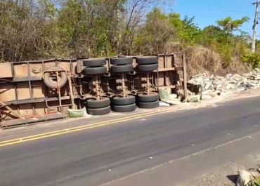 Motorista perde controle de carreta e tomba na BR-343 em Piripiri (PI)